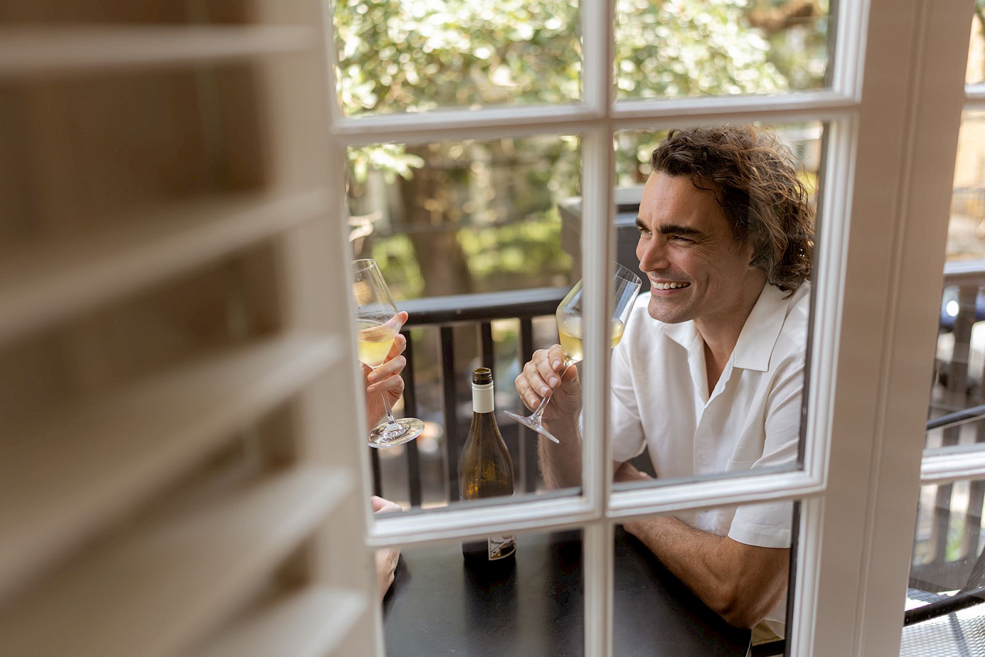 With a private balcony overlooking oak-lined streets and historic buildings, the Deluxe Loft Queen blends charm and comfort across two levels. Downstairs, you’ll find a queen bed, wet bar, wine fridge, and a tub/shower combo; upstairs, a loft with two twin beds makes it perfect for families or small groups. Thoughtful extras like in-room snacks, curated drinks, and full glassware elevate the experience.